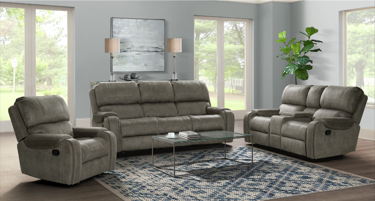 This comfortable, easy to recline seating will turn your living room into a luxurious place to watch the game with friends or relax with your favorite book and beverage. Padded, contoured arms and extra plush back with contrast top stitching and decorative nailheads create a cozy, rustic feel that will give any room a more contemporary look.