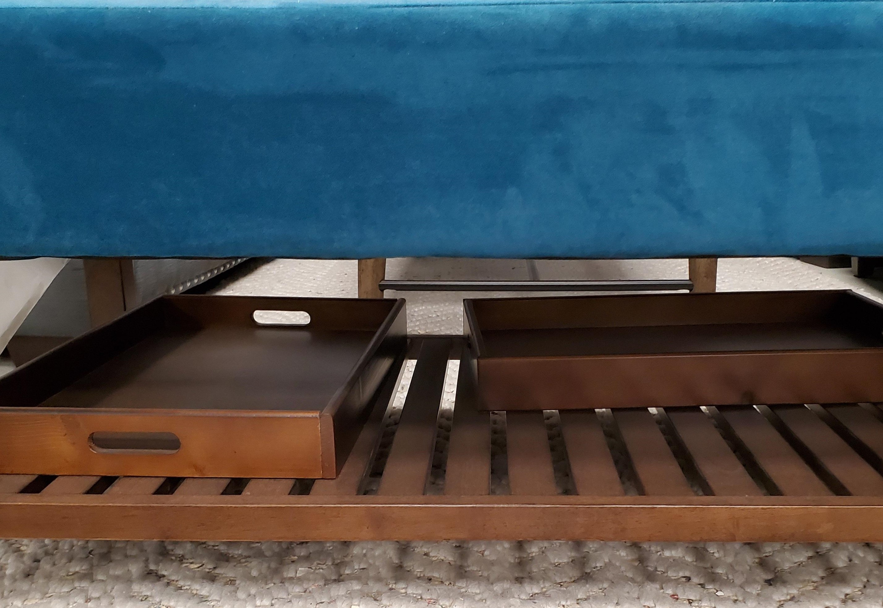 Klaussner® Elliot Ottoman with removable trays on lower shelf and wooden baseRead More