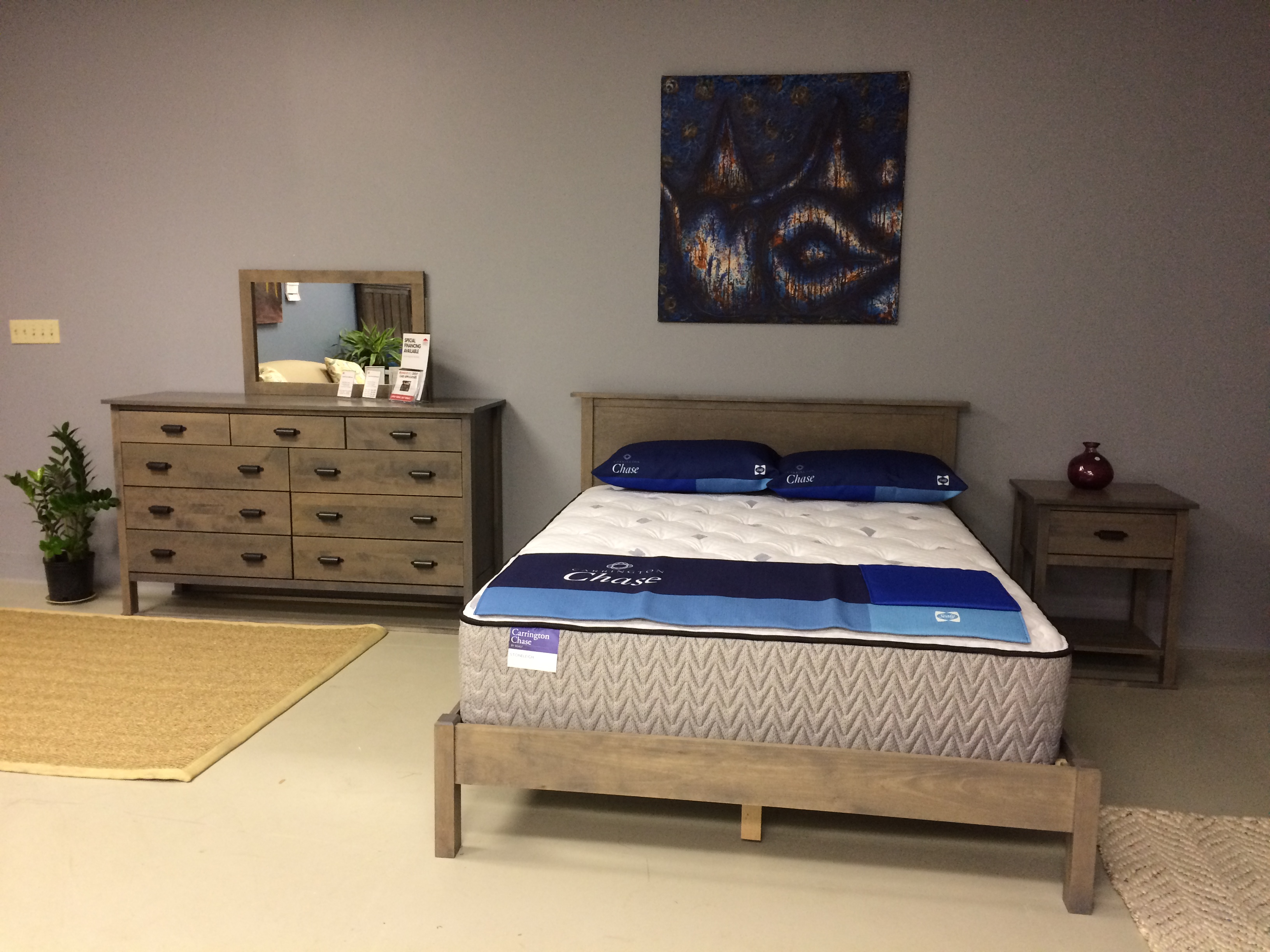 Custom designed bedroom with Queen Bed, One Drawer Nightstand, 9 Drawer Dresser and Mirror. Solid birch Made in USA from sustainably sourced wood. This bedroom set will stay in style and last for years. The clean lines and custom detail on each piece will make a statement in your home as you choose to own something with a low environmental impact.Read More